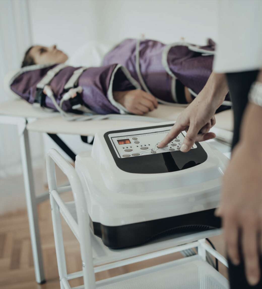 La pressothérapie est une technique avancée de stimulation de la circulation veino-lymphatique par des pressions mécaniques, offrant une alternative efficace au drainage lymphatique manuel. Ce soin contribue à raffermir les tissus, à améliorer la texture de la peau, et à réduire l'apparence de la cellulite. En plus de ses bienfaits esthétiques, la pressothérapie procure un effet relaxant et apaisant, soulageant le stress et procurant une sensation de légèreté.